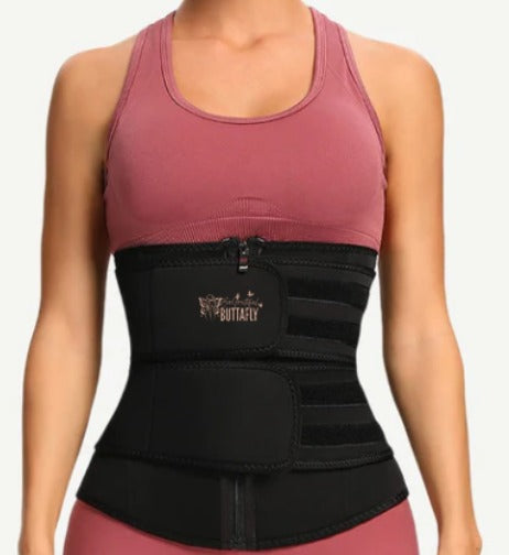 Black Neoprene Waist Trimmer with Zipper and Double Belt