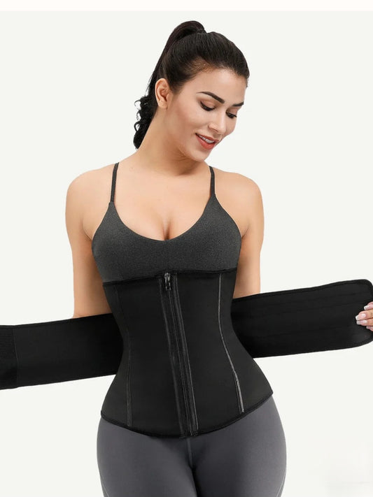 Neoprene Black Front Zipper Double Layer Waist Cincher